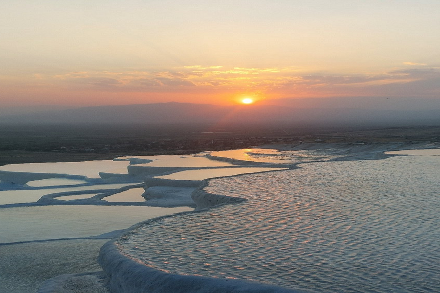 Continue to Pamukkale, famous for its white travertine terraces and thermal waters. Explore the adjacent ruins of Hierapolis, including the Roman theatre, necropolis, and ancient thermal baths. Optionally, enjoy a swim in the Cleopatra Pool, a warm, mineral-rich pool surrounded by submerged Roman columns.